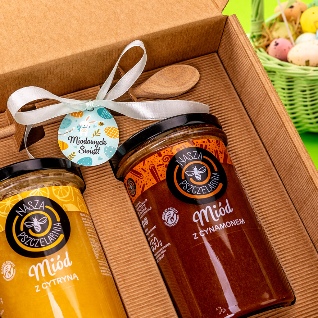 2 duże miody w pudełku na Wielkanoc